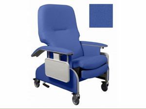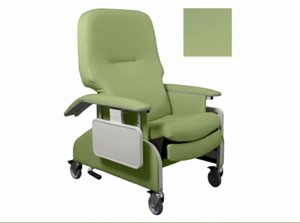 Deluxe Clinical Care Recliner with Drop Arms, EA, Granny SmithDeluxe Clinical Recliner With Drop Arms Meets California Technical Bulletin 133 Flammability Standards Innovative, easy to actuate drop arm feature. Self-storing, dual drop arms are simple for the caregiver to activate and enables a safer, easier lateral transfer for the resident and caregiver. The unique recline mechanism enables the patient to position the back infinitely from TV position to full recline. The wide, contoured seat and back, along with an integrated footrest provide an enhanced level of comfort. Built-in arm pads in the back give improved support for the arms while in Trendelenburg. Wall saver armrest caps increase durability of the armrests and protect walls from marring. Easy to achieve Trendelenburg position. No more cables or handles, Trendelenburg position can be actuated from either side of recliner by a convenient foot pedal. Higher floor to back height enables the caregiver to raise the patient up with less effort reducing the chance for a back injury. Extra deep Trendelenburg position–Steeper angle improves patient stabilization. Easily removed “pop-out” side panels enable easy access to recliner for cleaning and maintenance. Four Tente® swivel casters facilitate transport and maneuverability in confined areas. Left and right rear top-locking casters provide positive lock. Directional wheel lock on right rear caster reduces “crabbing” of recliner and enables the chair to be moved down hallways with less effort. Durable, high-impact side tables sit flush with chair arm to conveniently hold prep materials. Easy to actuate by caregiver. Extra heavy duty recliner mechanism. Weight bearing capacity: 350 Pounds.Lumex Wrap-Around WarrantyWelded Frame: Limited LifetimeUpholstery: Limited One YearAll Other Components: Limited Three YearLumex Clinical Care Recliners are equipped with LiquiCell and AEGIS Microbe Shield® technologies.LiquiCell is an ult