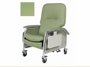 Deluxe Clinical Care Recliner, EA, Granny SmithDeluxe Clinical Care ReclinerMeets California Technical Bulletin 133 Flammability Standards The Lumex Deluxe Clinical Care Recliner sets a new standard of comfort for the patient and ease of use for the caregiver. The Lumex Deluxe Clinical Care Recliner is EXTRAordinary in many ways: The unique patent pending recline mechanism enables the patient to position the back infinitely from TV position to full recline. The wide, contoured seat and back, along with an integrated footrest provide an enhanced level of comfort. Built-in arm pads in the back give improved support for the arms while in Trendelenburg. Wall saver armrest caps increase durability of the armrests and protect walls from marring. Easy to achieve Trendelenburg position. No more cables or handles, Trendelenburg position can be actuated from either side of recliner by a convenient foot pedal. Higher floor to back height enables the caregiver to raise the patient up with less effort reducing the chance for a back injury. Extra deep Trendelenburg position–Steeper angle improves patient stabilization. Easily removed “pop-out” side panels enable easy access to recliner for cleaning and maintenance. Four Tente® swivel casters facilitate transport and maneuverability in confined areas.Left and right rear top-locking casters provide positive lock. Directional wheel lock on right rear caster reduces “crabbing” of recliner and enables the chair to be moved down hallways with less effort. Durable, high-impact side tables sit flush with chair arm to conveniently hold prep materials. Easy to actuate by caregiver. Extra heavy duty recliner mechanism. Weight bearing capacity: 350 Pounds.Lumex Wrap-Around WarrantyWelded Frame: Limited LifetimeUpholstery: Limited One YearAll Other Components: Limited Three YearLumex Clinical Care Recliners are equipped with LiquiCell and AEGIS Microbe Shield® technologies.LiquiCell is an ultra-thin, liq